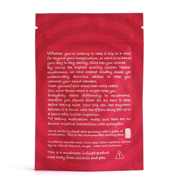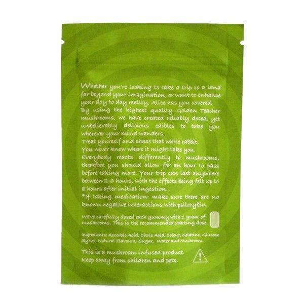 Whether you’re looking to take a trip to a land far beyond your imagination or want to enhance your day to day reality, Alice has you covered. By using the highest quality Golden Teacher Mushrooms, we have created reliably dosed, yet unbelievably delicious edibles to take you wherever your mind wanders.