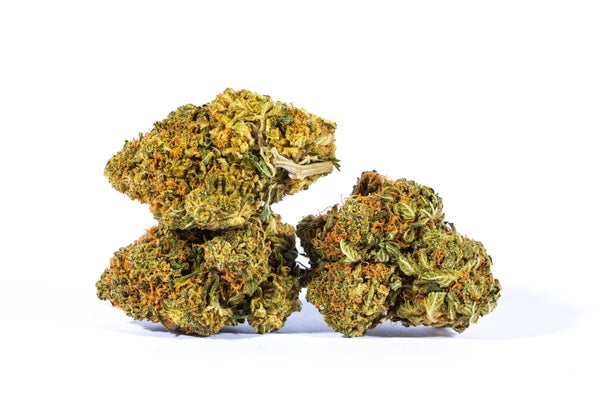 These buds are dark green in color with brownish-orange hairs and a coating of crystals and relatively small amounts of resin. Don’t be fooled by the resin – these dank buds are as dense as they come. Critical Mass has a mild 18% THC level and is often used to treat chronic pain from illnesses, such as cancer and multiple sclerosis, as well as anxiety and panic disorders.