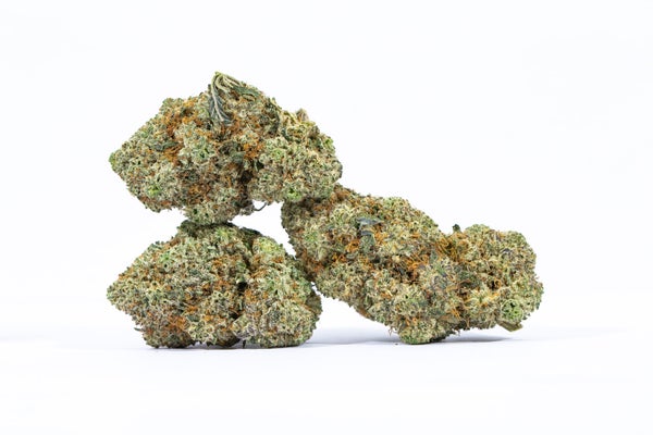 Elmer’s Glue is an evenly balanced hybrid (50% Indica/50% Sativa) strain created by crossing the world-famous Gorilla Glue #4 X White Widow strains. This insanely potent bud boasts mind-numbing effects that leave you lifted for hours on end, all powered by a very high 24.5% average THC level. It is not for the faint of heart or the novice user. The high hits you hard with an immediate cerebral boost that offers an influx of focused energy and leaves you clear-headed and razor-sharp focus. You’ll be highly aware of everything that is happening around you and may find yourself getting distracted by small details you never noticed before. These effects give Elmer’s Glue an edge in treating conditions such as fatigue, ADD/ADHD, depression, and insomnia. It should not be used by any patient who suffers from anxiety. This bud gets its name from its super sticky nugs that are completely coated from top to bottom in syrupy sweet resin and sprinkled with frosty crystal trichomes.