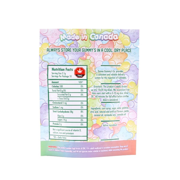Kick back and have a dank delight with the newest THC oil infused gummy’s from Dames Gummy Co. Once you’ve tried the confectionery mastered recipe of Cola gummy’s from Dames Gummy Co. the classic treat will never be the same. Even though they taste divine, they pack a punch leaving you in a euphoric relaxed state. Enjoy a 200mg package of 10 – 20mg dusted sugar cola bottles with only the highest quality THC cannabis oil ingredients.