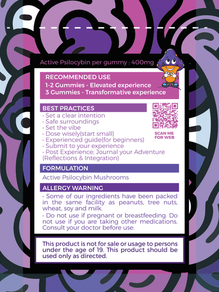 Got a sweet tooth? We’ve got you covered. Introducing Mushy Mushys’ delicious 400mg gummy. Carefully crafted by the Mushy team, what sets these gummies apart is the purity of their extract. Each Mushy gummy has the exact equivalent of 400mg of dried psilocybin mushroom. Our extraction process fully removes the compound CHITIN — a naturally-occurring amino polysaccharide that is known to be the occasional cause of upset stomach and nausea when eating mushroom stems and caps. Think of it as a mushroom’s natural defense mechanism. No chitin means no gut rot and no upset tummies. That means you’re free to experience everything Mushy has to offer with no distractions.- Packs include 2 Gummies