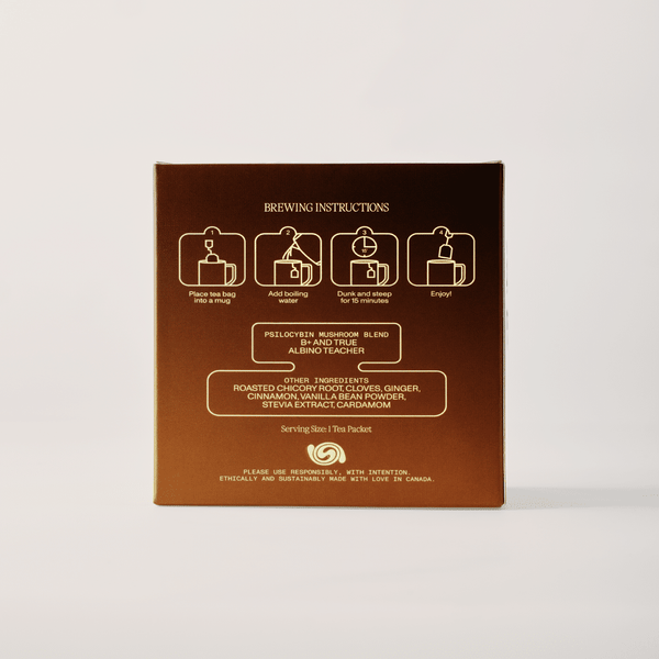 Enhance social moments with our soothing magic mushroom infused spice tea blend. Experience the warmth of genuine connections and shared experiences with each sip.8 x 375 mg packets per box. 3 g total.